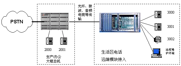 體系特點(diǎn):新增的住宅小區(qū)和分支機(jī)構(gòu)電話系統(tǒng)不需增加一臺交換機(jī)或者對交換機(jī)進(jìn)行大的改造,只需在該小區(qū)和分支機(jī)構(gòu)增加DAS128的遠(yuǎn)端模塊。該電話系統(tǒng)功能與本機(jī)完全一致并可由交換機(jī)統(tǒng)一管理。節(jié)約投資費(fèi)用、并進(jìn)一步減少維護(hù)人力資源和管理費(fèi)用。遠(yuǎn)端模塊與交換機(jī)之間使用光纜連接,也免除了維護(hù)、檢查大捆通信電纜線的煩惱。所有分支機(jī)構(gòu)都可共享總機(jī)全部資源。