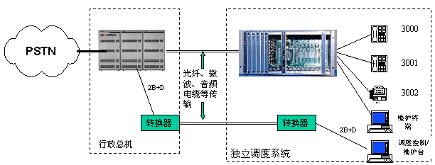 適用范圍:這種應(yīng)用適用于對電話系統(tǒng)安全性要求嚴(yán)格的場合,如電力系統(tǒng)行政交換機(jī)與調(diào)度交換機(jī)就可以以上述方式實(shí)現(xiàn)備份,從而實(shí)現(xiàn)行政或調(diào)度交換機(jī)某一臺不能工作時(shí),依然可以通過備份系統(tǒng)打電話。