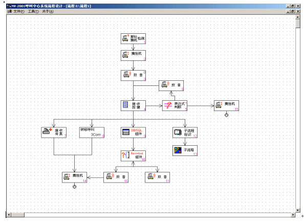 NV-IVR是一個(gè)使用方便、功能強(qiáng)大支持持續(xù)開發(fā)的開放式產(chǎn)品。NV-IVR運(yùn)用圖形化按鈕,直觀顯示各個(gè)子模塊的主題,使用者只要通過簡單的拖曳、配置就可以生成一棵樹狀流程圖,直觀地對(duì)照IVR的實(shí)際運(yùn)行流程。用戶需要對(duì)實(shí)際流程進(jìn)行修改,只須對(duì)流程圖修建即可。NV-IVR可以完成以下一些主要功能: