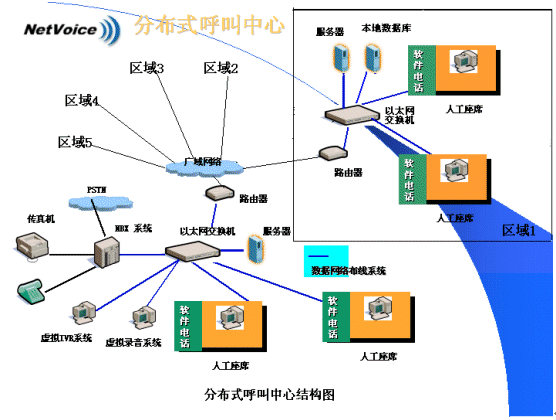 由于代理技能差異、語言差異、呼叫量的差異,以及客戶中心客戶所在地的變化及每個(gè)客戶對(duì)各自所擁有的用戶資料的保密性需求,分布式呼叫中心往往更適合各類企業(yè)的實(shí)際。分布式呼叫中心的建立,意味著需要在多個(gè)分中心之間進(jìn)行統(tǒng)一的呼叫控制及語音與同步數(shù)據(jù)轉(zhuǎn)移。NBX網(wǎng)絡(luò)交換機(jī)的引入,兩網(wǎng)合一的特性使分布式呼叫中心的建立成為了一件非常容易的事情。呼叫中心可以擴(kuò)展到多個(gè)位于不同地域的局域網(wǎng)上,通過路由選擇可以自動(dòng)地把呼叫(