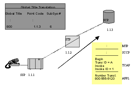 主叫用戶拔叫800用戶號,這就觸發(fā)位于交換局(圖中SSP)內(nèi)的路由應(yīng)用程序發(fā)出一個TCAP查詢。圖中的STP收到查詢,用MTP層和SCCP層協(xié)議轉(zhuǎn)發(fā)查詢到SCP的800號碼數(shù)據(jù)庫。這樣,SSP中的應(yīng)用程序就和SCP直接建立了對話。