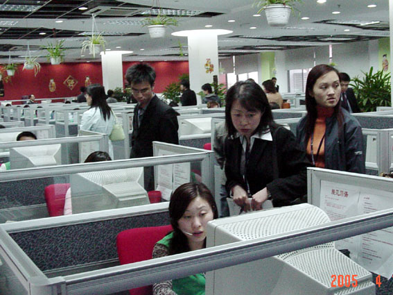 。。2005年4月12日,2005中國國際呼叫中心與客戶關(guān)系管理大會組織了呼叫中心現(xiàn)場參觀,第一參觀路線為世紀新元和盛大網(wǎng)絡(luò),第二參觀路線為招商銀行信用卡中心(CCCS認證五星級呼叫中心)和平安財險,以下是相關(guān)圖片報道: