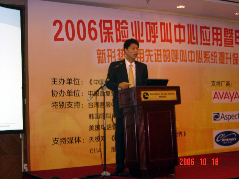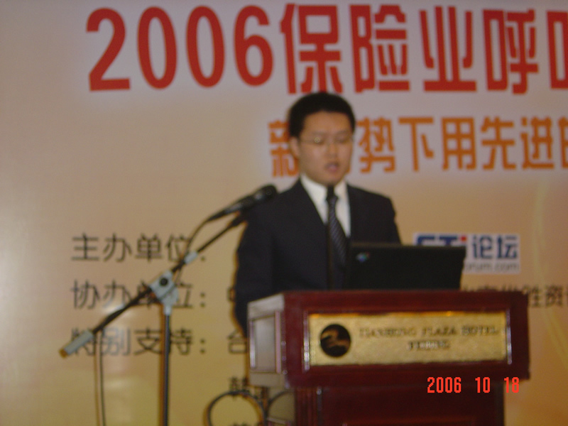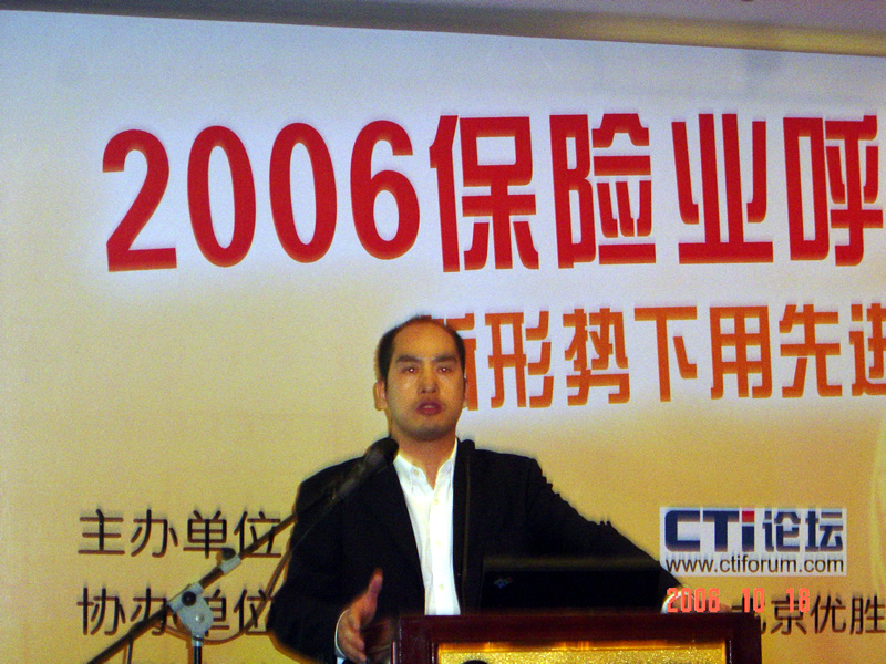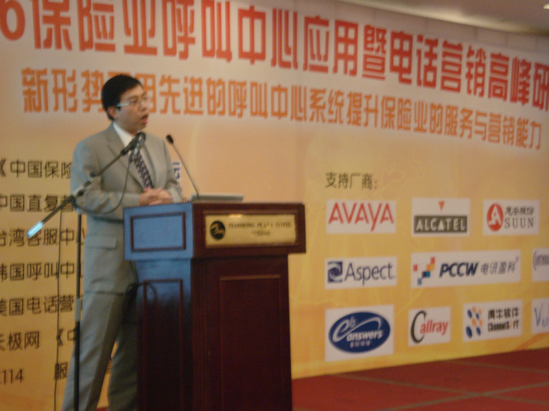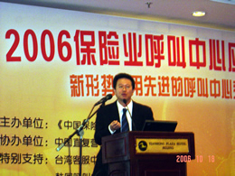 。。2006年10月18日,2006保險(xiǎn)業(yè)呼叫中心應(yīng)用暨電話營銷高峰研討會(huì)在北京天鴻科園大酒店隆重召開,以下是大會(huì)主題演講的相關(guān)圖片報(bào)道: