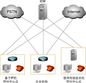 IPCC可安裝在單點(diǎn)環(huán)境中,也可集成到多點(diǎn)網(wǎng)絡(luò)聯(lián)絡(luò)中心企業(yè)中,還能在電信服務(wù)提供商代管的環(huán)境中實(shí)施。它利用企業(yè)現(xiàn)有的IP網(wǎng)絡(luò),使企業(yè)各機(jī)構(gòu)能充分利用其廣域網(wǎng)基礎(chǔ)設(shè)施,這樣不但降低了管理開支,還能讓企業(yè)聯(lián)絡(luò)中心的邊界擴(kuò)展到分支辦公室、家庭座席與知識(shí)型員工座席。不管企業(yè)是在擴(kuò)大現(xiàn)有業(yè)務(wù)的規(guī)模,還是正在建立自己的第一個(gè)聯(lián)絡(luò)中心,IPCC都可幫助企業(yè)獲得最低的合并網(wǎng)絡(luò)成本與性能優(yōu)勢(shì)。隨著新技術(shù)的出現(xiàn),IPCC基于開放式體系機(jī)構(gòu)有助于各機(jī)構(gòu)隨時(shí)利用新技術(shù)所帶來(lái)的優(yōu)勢(shì)(如圖1所示)。
