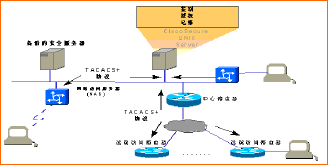 (TACAS:Terminal Access Controller Access Control System--終端訪問控制系統(tǒng))有了這樣的服務(wù)器以后,連接在這個(gè)網(wǎng)絡(luò)的所有用戶,不管它需要以什么樣的方式訪問網(wǎng)絡(luò)設(shè)備,都必須通過服務(wù)器的安全性監(jiān)測(cè)。由于服務(wù)器上可以運(yùn)行功能很強(qiáng)的安全性方面的軟件,可以完全滿足BOSS系統(tǒng)的安全需求。在路由器、撥號(hào)訪問服務(wù)器和安全服務(wù)器之間傳送的可以是經(jīng)過加密的有關(guān)網(wǎng)絡(luò)安全協(xié)議的數(shù)據(jù)流。
