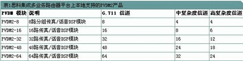 在任意思科集成多業(yè)務(wù)路由器平臺主板上使用任意思科PVDM2產(chǎn)品(PVDM2-8,PVDM2-16,PVDM2-24,PVDM2-32或PVDM2-64),可實(shí)現(xiàn)內(nèi)嵌模塊性,無需使用網(wǎng)絡(luò)模塊或AIM,即可提供會議、譯碼和話音端接。在思科集成多業(yè)務(wù)路由器中安裝思科PVDM2產(chǎn)品,可為IP話音流量和時分多路復(fù)用(TDM)流量提供這些服務(wù)。使用思科集成多業(yè)務(wù)路由器上本地安裝的VIC、VWIC或EVM(EVM僅在Cisco
