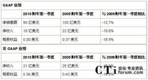 CTI論壇(ctiforum)11月5日消息:全球領先的致力于改進人們聯(lián)絡、溝通和協(xié)作方式的互聯(lián)網(wǎng)解決方案提供商思科今天發(fā)布了截止到2009年10月24日的第一季度業(yè)績報告。報告顯示,第一季度凈銷售額為90億美元,根據(jù)通用會計準則(GAAP)計算的凈收入為18億美元,合每股0.30美元,非GAAP凈收入為21億美元,合每股0.36美元。