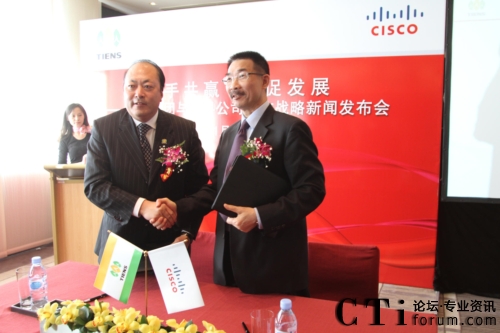CTI論壇(ctiforum)1月12日消息(記者 張塵):2010年1月11日,北京——“攜手共贏 共促發(fā)展——天獅集團(tuán)與思科公司戰(zhàn)略項(xiàng)目新聞發(fā)布會(huì)”在北京召開,雙方共同宣布,天獅集團(tuán)國際健康產(chǎn)業(yè)園網(wǎng)絡(luò)平臺(tái)成功啟用,并正式達(dá)成合作戰(zhàn)略。天獅集團(tuán)董事長兼總裁李金元先生與思科全球副總裁、思科中國副董事長兼總裁林正剛先生出席新聞發(fā)布會(huì),并進(jìn)行簽約儀式。通過本次強(qiáng)強(qiáng)聯(lián)合,思科面向服務(wù)的網(wǎng)絡(luò)架構(gòu)(SONA)全面部署于天獅集團(tuán)國際健康產(chǎn)業(yè)園,為天獅集團(tuán)業(yè)務(wù)的穩(wěn)定持續(xù)發(fā)展以及信息化水平的進(jìn)一步提升提供了可靠保證,同時(shí)也為雙方未來更深層次的合作打下了堅(jiān)實(shí)的基礎(chǔ)。