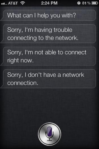 Siri不只是一個(gè)簡(jiǎn)單的語(yǔ)音控制軟件。為了能夠正常運(yùn)行,它必須連接到蘋(píng)果公司的服務(wù)器去獲取其他信息。例如,當(dāng)用戶詢(xún)問(wèn)Siri田納西州納什維爾市的天氣情況時(shí),它必須與擁有此類(lèi)信息的主數(shù)據(jù)庫(kù)進(jìn)行通信,然后再將結(jié)果反饋給用戶。