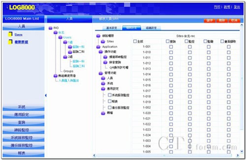 權(quán)限管理設(shè)計(jì),采樹枝狀展開圖之設(shè)計(jì)模式,讓系統(tǒng)管理者可以輕易地掌握目前建立組織(各個(gè)據(jù)點(diǎn))、人員(為值機(jī)員、督導(dǎo)、評(píng)分員或管理者)與不同群組之狀態(tài),設(shè)定多層級(jí)的權(quán)限密碼,增加維護(hù)便利性。