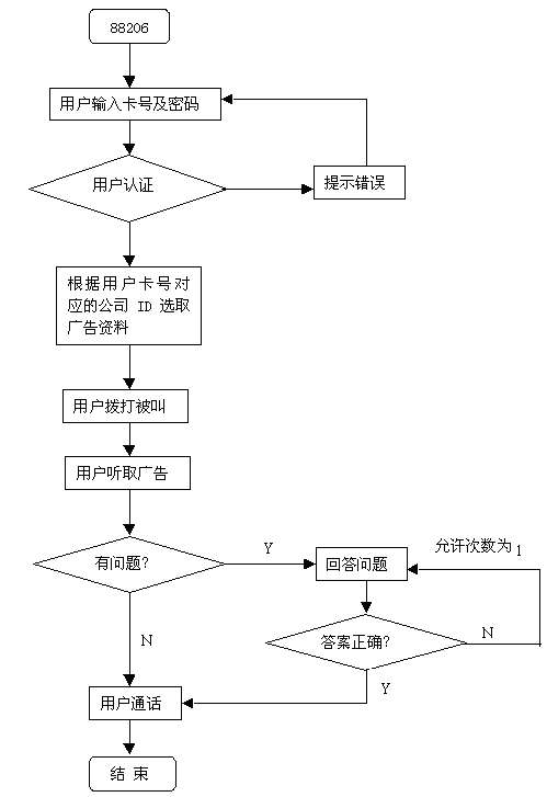 如用戶撥88206進(jìn)入系統(tǒng)平臺(tái),輸入用戶帳號(hào)及密碼,系統(tǒng)流程如下圖所示: