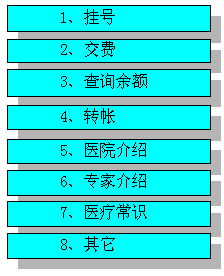 對(duì)于主流程里面的醫(yī)院介紹、科室介紹和專家介紹,只需要用戶按鍵選擇即可。而且對(duì)用戶不加限制,任何用戶(包括沒(méi)有就診卡的用戶)也可以查詢。