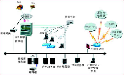 本項目采用新太科技交互式電話會議系統(tǒng)2.0版,系統(tǒng)各組成部分見圖1。前端接入設(shè)備采用SUNTEK-IPS數(shù)字排隊機,負責(zé)多方電話會議用戶和其他業(yè)務(wù)用戶接入的交換排隊、自動語音資源提供、座席服務(wù)資源提供、錄音、計費等等。SUNTEK-IPS數(shù)字排隊機是新太科技最新一代軟交換平臺,是整個系統(tǒng)平臺的核心。它綜合了新太科技歷代平臺的優(yōu)勢,采用世界上最先進的軟交換(包交換)技術(shù)和CompactPCI技術(shù),支持主控CPU卡冗余和熱拔插,擁有更大規(guī)模的交換系統(tǒng)總線(CompactPCI的CTBus總線共有4096個時隙,理論上,單個機框可以支持4k×4k的交換)。SUNTEK-IPS數(shù)字排隊機基于自主開發(fā),擁有自主產(chǎn)權(quán),保證了極高的性價比,已經(jīng)通過了信息產(chǎn)業(yè)部入網(wǎng)認證。SUNTEK-IPS數(shù)字排隊機現(xiàn)已在十多個省成功開展全省業(yè)務(wù)的事實,證明了它具備技術(shù)先進、可靠性強等特點。