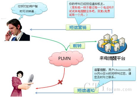 來(lái)電提醒業(yè)務(wù)是指被叫用戶在忙、無(wú)人接聽、不在服務(wù)區(qū)、關(guān)機(jī)等狀態(tài)下,使用來(lái)電提醒功能,享受到語(yǔ)音信箱、機(jī)主留言及機(jī)主特定留言等個(gè)性化和人性化的提醒服務(wù),其有著傳統(tǒng)通信無(wú)可比擬的優(yōu)點(diǎn)。