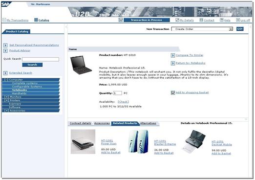 就技術層面來看,我趨向于把SAP CRM的電子商務功能分成兩大類: