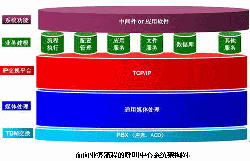 面向業(yè)務(wù)流程的呼叫中心基礎(chǔ)平臺(tái)采用水平式系統(tǒng)架構(gòu),此種架構(gòu)方式屏蔽了底層功能(如交換、媒體處理)的技術(shù)實(shí)現(xiàn),通過(guò)業(yè)務(wù)抽象為業(yè)務(wù)流程提供功能部件的組合,相對(duì)于傳統(tǒng)的垂直分散的結(jié)構(gòu)而言,用戶只關(guān)注業(yè)務(wù)流程,無(wú)需關(guān)心底層的技術(shù)實(shí)現(xiàn)。