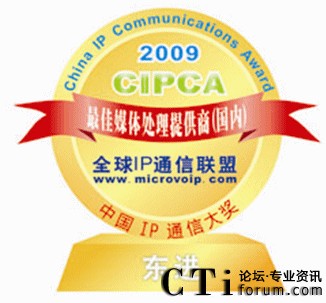 代表國(guó)內(nèi)IP通信領(lǐng)域最高水準(zhǔn)的中國(guó)IP通信大獎(jiǎng)(CIPCA),于2009年9月25日在上海NexCom Expo 下一代網(wǎng)絡(luò)通信展暨CIPCC中國(guó)IP通信大會(huì)上揭曉。深圳市東進(jìn)技術(shù)繼2008年獲得此項(xiàng)殊榮后,憑借無(wú)可爭(zhēng)議的票數(shù)優(yōu)勢(shì),蟬聯(lián)“2009中國(guó)IP通信大獎(jiǎng)”,取得“最佳媒體處理提供商(國(guó)內(nèi))”獎(jiǎng)項(xiàng)。
