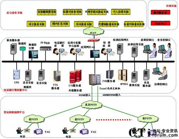 中國郵政儲蓄銀行電話銀行暨信用卡客服中心系統(tǒng)的物理結構如下圖所示:
