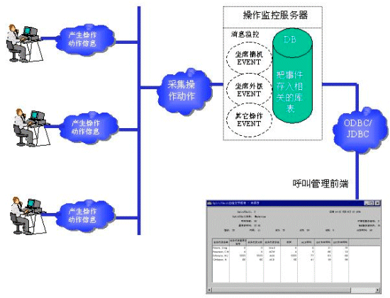 這種方案的主要優(yōu)點(diǎn)是信息非?焖俸蜏(zhǔn)確,由于消息來源只和坐席的操作動(dòng)作有關(guān),并且中間沒有其它中轉(zhuǎn)系統(tǒng),所以不會(huì)出現(xiàn)坐席已經(jīng)掛機(jī)2秒后,管理系統(tǒng)還顯示坐席通話的情況。