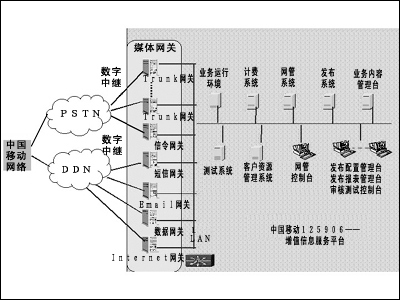 中國移動1259061增值信息服務平臺采用青牛軟件公司提供的網(wǎng)絡中間件產品。這個平臺采用移動通信網(wǎng)絡負責處理全國的呼叫接入,將來自全國的電話呼叫通過長途網(wǎng)從北京局匯入到該增值信息服務平臺上。呼叫分布到多臺服務器上,青牛網(wǎng)絡中間件實現(xiàn)話路的處理、語音的播報、數(shù)據(jù)的統(tǒng)計等等。