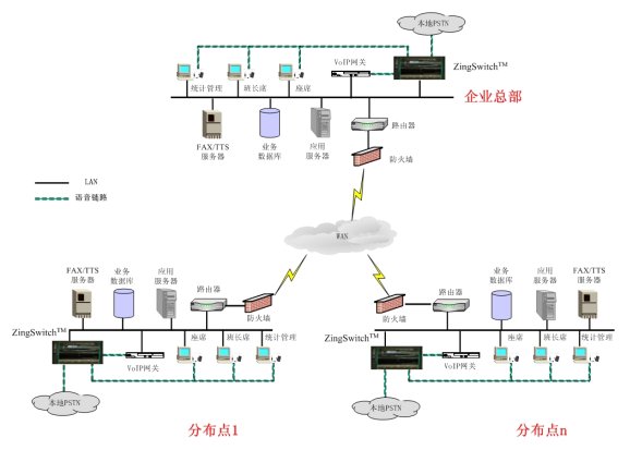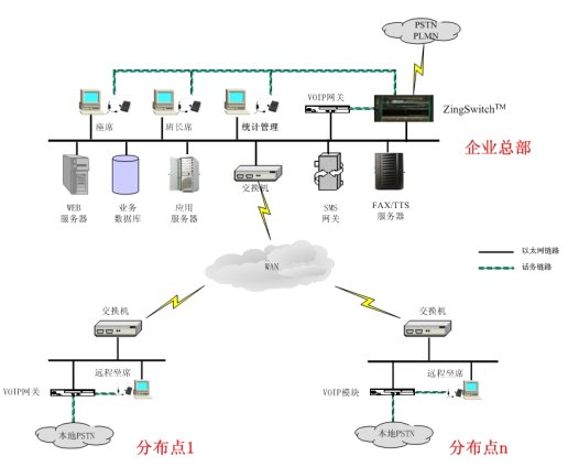 ZingSwitch® CVNET呼叫中心平臺同時支持在各個分布點同時部署ZingSwitch®交換機,采用統(tǒng)一的交換平臺搭建呼叫中心網絡,各分布點同時擁有因地制宜、按需部署的靈活性。