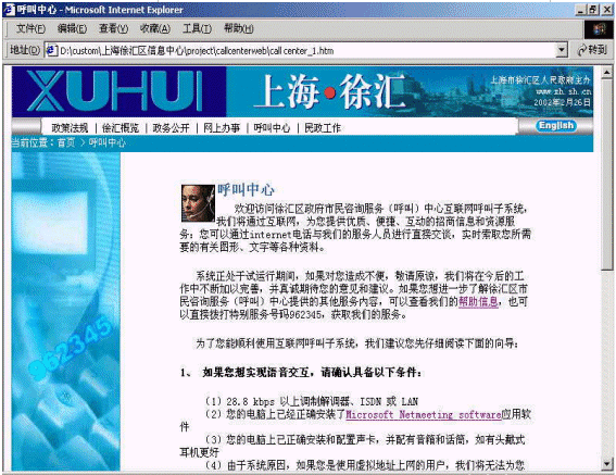 中心的具體功能包括語音自動應答IVR、座席端應用、網上服務、文本語音轉換TTS、傳真FAX、語音留言和報表等。一期工程開通服務的有技術監(jiān)督、教育、勞動、民防、司法和招商中心等六部門。