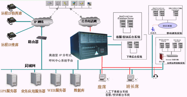 物流是商業(yè)發(fā)達(dá)社會必然高速度發(fā)展的產(chǎn)業(yè)之一,不僅僅要求物品從供應(yīng)地向接收地的實(shí)體流動過程,同時(shí)也是信息流和資金流的過程,根據(jù)實(shí)際不同的需要,需要運(yùn)輸、儲存、裝卸、搬運(yùn)、包裝、流通加工、配送、信息處理等基本過程有機(jī)結(jié)合,從而完成用最短的時(shí)間合理將物品運(yùn)向目的地。在整個(gè)物流過程中,涉及到的各個(gè)環(huán)節(jié),分散在不同的區(qū)域,需要一個(gè)信息平臺將整個(gè)物流環(huán)節(jié)聯(lián)接起來,及時(shí)把握客戶的定貨需求,進(jìn)行車輛的調(diào)度管理,庫存管理以及票據(jù)管理等,力求實(shí)現(xiàn)用最少的庫存,最短的運(yùn)輸距離滿足客戶的需求,F(xiàn)代物流企業(yè)與以往的物流企業(yè)不同,不僅僅局限于物流中的某一個(gè)環(huán)節(jié),而是普遍采用了信息化管理技術(shù),如ERP、物流管理(LM)、SCM等應(yīng)用系統(tǒng),并通過Internet將遍布在各地的物流中心與客戶連接起來,形成一個(gè)高效率的物流配送網(wǎng)絡(luò)。建立在奧迪堅(jiān)IPDCC的分布式呼叫中心平臺上的光大科技物流客戶服務(wù)系統(tǒng),以IP技術(shù)為核心在網(wǎng)絡(luò)上構(gòu)建一個(gè)語音和數(shù)據(jù)的統(tǒng)一平臺,在一臺服務(wù)器上融合了CTI、PBX、ACD、VoIP、Voice、Mail,Recording,Call