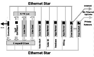 如果我們采用基于CompactPCI標(biāo)準(zhǔn)的刀片服務(wù)器系統(tǒng)來實(shí)現(xiàn),系統(tǒng)可能就是完全另外一種樣子(如圖1),這樣的實(shí)現(xiàn),首先系統(tǒng)體積小,只要一個刀片服務(wù)器機(jī)箱;第二,系統(tǒng)基于標(biāo)準(zhǔn)的體系架構(gòu),開發(fā)和維護(hù)容易,成本低廉;第三,系統(tǒng)非常好地集成了語音通信和IP通信,易于部署增值電信業(yè)務(wù);第四,系統(tǒng)具有較好的可擴(kuò)展性,因?yàn)楸嘲逄峁┝素S富的帶寬資源,同時單位空間內(nèi)豐富的插槽,可以安裝更多的服務(wù)器刀片,提供了充足的計(jì)算資源;第五,系統(tǒng)還可以利用各種高可靠性和高可管理性的特點(diǎn)。