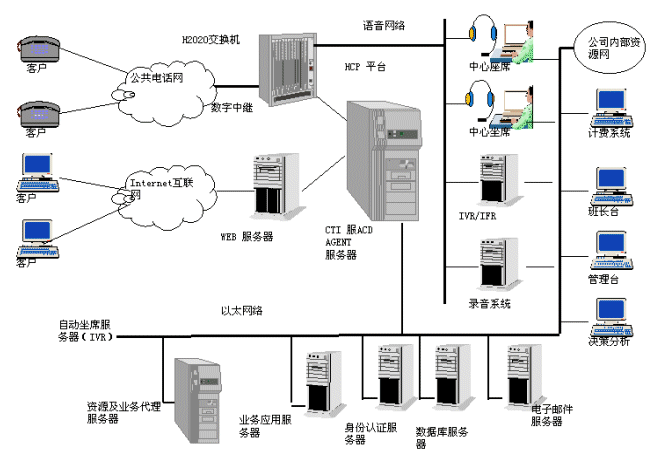 COM+接口 即不僅僅提供交換機,而且為系統(tǒng)集成商提供開發(fā)平臺,方便第三方系統(tǒng)集成。直接加載業(yè)務(wù)軟件即可構(gòu)成完整的呼叫中心系統(tǒng)。