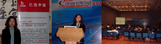 一年一度的中國呼叫中心與客戶關(guān)系管理大會(huì)于2006年4月3日在北京國際會(huì)議中心隆重開幕,并與4月5日?qǐng)A滿閉幕。今年大會(huì)主題為:新時(shí)期的呼叫中心及CRM,成就與挑戰(zhàn)。此次活動(dòng)吸引了與呼叫中心相關(guān)的各界人士的光臨,共計(jì)1000多人與會(huì),活動(dòng)連續(xù)三天。億迅(中國)軟件有限公司(eSOON)作為呼叫中心及CRM業(yè)優(yōu)秀的開發(fā)商和集成商,在本次大會(huì)上以特別贊助商的身份閃亮登場,給大家留下了深刻的印象,并為大家?guī)砗艚兄行募癈RM領(lǐng)域最新的趨勢分析及最佳的解決方案。
