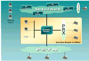 對于普通的傳真機(jī),ExtraFax Router是更合算的選擇。它不僅不需要額外的網(wǎng)關(guān)設(shè)計,而且它還可以自動計算長途計費(fèi)單。最重要的是它可以自動尋找最佳路徑 (即最節(jié)省的方式) 通過Internet/Intranet發(fā)送傳真,同時ExtraFax Router基于DID/DTMF/CSID/PORT/Channel的自動分發(fā)到個人的傳真信箱也降低了人工管理的費(fèi)用并能實現(xiàn)傳真的安全性。