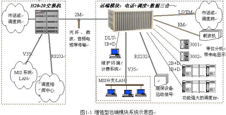 為 H20-20 交換機提供 話音、調度及數(shù)據 的三合一綜合接入;