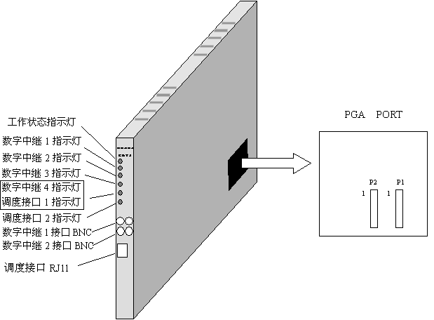 EDT4D 是在舊 EDT4 板上增加調度接口。見圖 4 , EDT4D 為一塊 H20-20 交換機插板,厚度為兩個槽口。 EDT4 通過扁平電纜與交換機公共控制機柜的背板 PGA 相連,提取交換機時隙;并將時隙轉換為由四個數(shù)字中繼接口 E1 組成的準 V5.2 接口與遠端模塊相連。一塊 EDT4 可接 2 個 PGA 端口組,共 128 個話路。