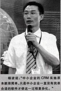 楊波說:“中小企業(yè)的CRM實(shí)施原本就很簡單,只是中小企業(yè)一直沒有找準(zhǔn)合適的軟件才使這一過程復(fù)雜化。”