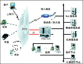 IP Switch是平臺(tái)交換系統(tǒng),也是整個(gè)平臺(tái)的核心。負(fù)責(zé)多方電話會(huì)議用戶和其它業(yè)務(wù)用戶接入的交換排隊(duì)、自動(dòng)語(yǔ)音資源提供、座席服務(wù)資源提供、錄音、計(jì)費(fèi)等等。硬件由Intel的IP交換機(jī)組成。由于采用了較高的集成度,單機(jī)框最大可以支持4K×4K的交換量,同時(shí)具有程控交換機(jī)的穩(wěn)定性和處理能力,但是價(jià)格比傳統(tǒng)電路交換機(jī)要低很多。它還可承載傳統(tǒng)電路交換機(jī)所不能勝任的包交換功能,符合通信技術(shù)的未來發(fā)展趨勢(shì)。