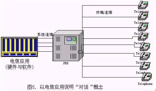 一般來說,一個(gè)基于電話語音識(shí)別的對(duì)話系統(tǒng)(如圖5所示),一般由識(shí)別服務(wù)器、應(yīng)用服務(wù)器、電話交換機(jī)、智能交換機(jī)設(shè)備、 IVR設(shè)備等設(shè)備組成,電話交換機(jī)與成千上萬個(gè)電話終端通過各種交換設(shè)備相連接,電信應(yīng)用軟件在這些硬件的支持下提供各種服務(wù),如:1860查詢服務(wù)等。此時(shí),電信應(yīng)用開通的線數(shù)視系統(tǒng)的業(yè)務(wù)需求而定,一般總是大大小于終端連接的總數(shù)。系統(tǒng)連接數(shù)與終端連接數(shù)常常是1:1000或者1:10000的級(jí)別。"一路對(duì)話"是指物理上的一條線路,對(duì)于上述的電信應(yīng)用,電信開通的每一條線路都是一路對(duì)話。