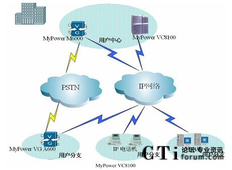 在用戶中心部署MyPower VC8100 IP通信服務(wù)器,同時(shí)部署MyPower M6000媒體網(wǎng)關(guān),在用戶分支機(jī)構(gòu)部署邁普公司小型媒體網(wǎng)關(guān)、IP電話機(jī)及軟電話,構(gòu)建以SIP協(xié)議為基礎(chǔ)的高擴(kuò)展性VOIP協(xié)同通信平臺。
