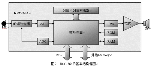 由美國Sensory Integrated Circuit公司開發(fā),2000年開始生產(chǎn),是一顆為消費(fèi)類電子產(chǎn)品應(yīng)用的低價(jià)位的語音識別專用芯片,其結(jié)構(gòu)圖如圖2所示。