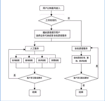 客戶打入電話后,當(dāng)系統(tǒng)的自動(dòng)語(yǔ)音應(yīng)答子系統(tǒng)無(wú)法解決客戶問(wèn)題時(shí),客戶可選擇人工服務(wù),由鐵路客戶服務(wù)代表直接接聽(tīng)客戶電話,處理并解決客戶問(wèn)題。此時(shí)客戶同座席話務(wù)人員直接溝通,并同時(shí)記錄下該客戶的聯(lián)系方式,將相關(guān)數(shù)據(jù)添加入系統(tǒng)數(shù)據(jù)庫(kù);也可以在數(shù)據(jù)庫(kù)的支持下回答國(guó)家和地方的鐵路信息及相關(guān)規(guī)定等的咨詢和疑問(wèn)?蛻粢部梢赃x擇自動(dòng)語(yǔ)音服務(wù)方式,根據(jù)系統(tǒng)的語(yǔ)音提示輸入按鍵,選擇類別,將自己的投訴和建議以及自己的聯(lián)系方式信息以留言錄音的方式保存在系統(tǒng)中。系統(tǒng)同時(shí)還支持自動(dòng)傳真方式,客戶可以通過(guò)傳真機(jī)進(jìn)入本系統(tǒng),通過(guò)按鍵選擇傳真方式,將自己的意見(jiàn)建議等的文本內(nèi)容傳真給系統(tǒng),系統(tǒng)自動(dòng)接受并存入數(shù)據(jù)庫(kù)。