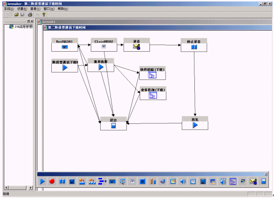 系統(tǒng)提供圖形化的語音流程生成環(huán)境,以方便用戶對語音流層進(jìn)行定制。流程生成器是一套可視化的流程設(shè)計(jì)工具,通過拖拉圖標(biāo)控件、鼠標(biāo)連線即實(shí)現(xiàn)呼叫中心CTI流程的制作,同時(shí),通過運(yùn)行時(shí)鏈接動(dòng)態(tài)連接庫(DLL),實(shí)現(xiàn)對業(yè)務(wù)數(shù)據(jù)庫的訪問;通過運(yùn)行時(shí)鏈接用戶DLL,最靈活地與用戶應(yīng)用系統(tǒng)結(jié)合;支持多種業(yè)務(wù)集成和動(dòng)態(tài)流程控制,方便用戶拓展業(yè)務(wù);采用事件驅(qū)動(dòng)機(jī)制、開放的結(jié)構(gòu),滿足各種語音系統(tǒng)的需要;支持不限個(gè)數(shù)、級數(shù)的IVR結(jié)構(gòu),可滿足用戶非常復(fù)雜的需求。