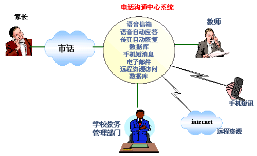 為此,很多學(xué)校都建立了自己的網(wǎng)站來(lái)作為對(duì)外宣傳和溝通的窗口,同時(shí),不少學(xué)校還建立了校園網(wǎng),但僅僅通過INTERNET來(lái)獲取相應(yīng)的學(xué)生信息和學(xué)校信息是不夠的,畢竟不是每個(gè)家長(zhǎng)都上網(wǎng)的,就算上網(wǎng)也只是偶爾,不能達(dá)到和學(xué)校經(jīng)常溝通的效果,尤其是在不很發(fā)達(dá)的地區(qū)這種現(xiàn)象尤為明顯。因此學(xué)校與家長(zhǎng)的溝通必須建立在一種十分普及的通訊方式基礎(chǔ)上,而當(dāng)前最為普及的通訊方式莫過于電話了。