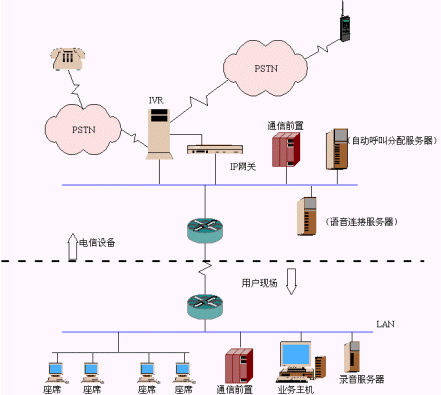 將信息平臺(tái)放在電信局,可以充分利用電信的線路資源,保證在咨詢高峰時(shí)話路不會(huì)擁塞,使企業(yè)真正作到"一站式"服務(wù),避免客戶因二次撥打引起的不滿,提高客戶的滿意度和忠誠(chéng)度。
