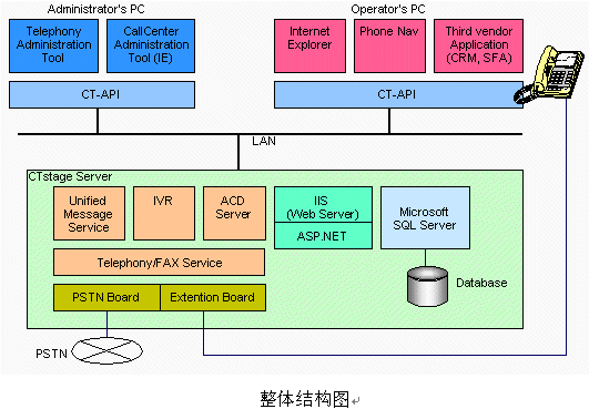 隨著經(jīng)營(yíng)環(huán)境和企業(yè)環(huán)境的日益激化,作為新時(shí)代的信息策略,計(jì)算機(jī)電話集成(CTI)也由于投資小效益大而倍受注目。沖電氣公司的CTstage實(shí)現(xiàn)最先端的多媒體通信的UnPBX(在服務(wù)器中加插電話板卡,以單臺(tái)計(jì)算機(jī)實(shí)現(xiàn)PBX功能的系統(tǒng))型的開放式CTI系統(tǒng)。在一臺(tái)PC服務(wù)器上實(shí)現(xiàn)IVR和ACD功能、內(nèi)線電話控制、ACD監(jiān)視器等呼叫中心所需要的功能,成為真正意義上的UnPBX呼叫中心。先進(jìn)的CTI的解決方案將作為企業(yè)的經(jīng)營(yíng)策略,迅速提高適應(yīng)市場(chǎng)的能力。