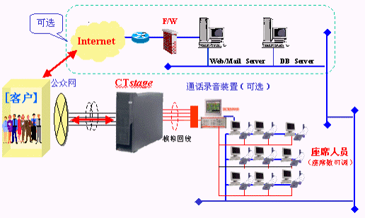 近來(lái)客戶關(guān)系管理逐漸成為注目的焦點(diǎn),客戶服務(wù)中心(即呼叫中心)已不再是電信企業(yè)、航空公司、商業(yè)銀行等大型企業(yè)與用戶密切交互的媒體,許多中小型企業(yè)也逐漸認(rèn)識(shí)良好客戶關(guān)系的提升已成為競(jìng)爭(zhēng)時(shí)代的致勝關(guān)鍵。同時(shí),呼叫中心經(jīng)過(guò)幾年的發(fā)展與摸索,產(chǎn)品的穩(wěn)定性和價(jià)格已經(jīng)鎖定在企業(yè)可以接受的范疇。在"完美服務(wù)質(zhì)量""對(duì)外有效提高客戶服務(wù)質(zhì)量,擴(kuò)大收入;對(duì)內(nèi)大幅提高員工生產(chǎn)力,降低成本"的巨大期待下,各企業(yè)開(kāi)始了建設(shè)呼叫中心的步伐,也開(kāi)始了對(duì)合作伙伴的挑剔選擇。而由日本沖電氣(OKI)公司提供基于CTI產(chǎn)品CTstage構(gòu)筑的UnPBX型呼叫中心,為中國(guó)的中小型企業(yè)量身打造了完美的客戶服務(wù)中心。