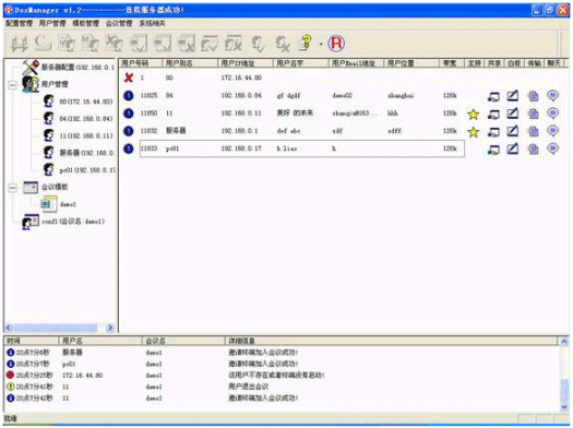 簡單方便的用戶管理,可以增加用戶、修改用戶信息、刪除用戶等。在會議中可以實時地檢測和顯示用戶的網絡狀態(tài)。