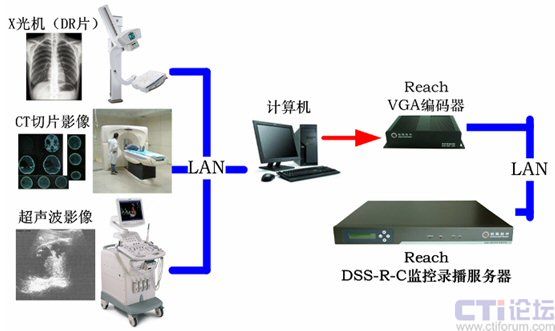 - 由于當(dāng)前的大多醫(yī)療設(shè)備,如X光機、CT機均擁有網(wǎng)絡(luò)接口并支持,由計算機通過網(wǎng)絡(luò)即可采集醫(yī)療設(shè)備中的影像,并采用VGA編碼器采集計算機中的CR或DR片、CT片、演示文件(PPT、WORD、EXCEL);