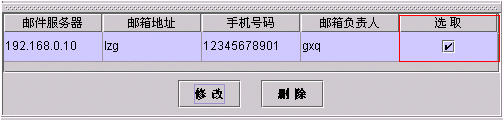 ·修改監(jiān)控郵箱配置時(shí),首先點(diǎn)擊'選取'項(xiàng)中的小方框,選中該列然后雙擊要修改項(xiàng)的內(nèi)容,修改完畢后按下Enter即回車鍵,再點(diǎn)擊修改按鈕