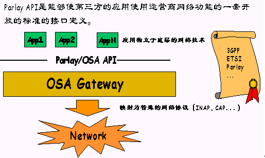 API和INAP、CAP等專用電信協(xié)議進(jìn)行映射最終在智能網(wǎng)上進(jìn)行業(yè)務(wù)執(zhí)行,達(dá)到最終NGN的業(yè)務(wù)開放程度,但業(yè)務(wù)的豐富性受到INAP等專用協(xié)議的限制。第二步,將SCP系統(tǒng)的軟件架構(gòu)向OSA體系進(jìn)行過渡,這個(gè)過程關(guān)鍵點(diǎn)在于保證業(yè)務(wù)用戶流程和業(yè)務(wù)數(shù)據(jù)的兼容性,最終,SCP的業(yè)務(wù)實(shí)現(xiàn)架構(gòu)將融合于Parlay