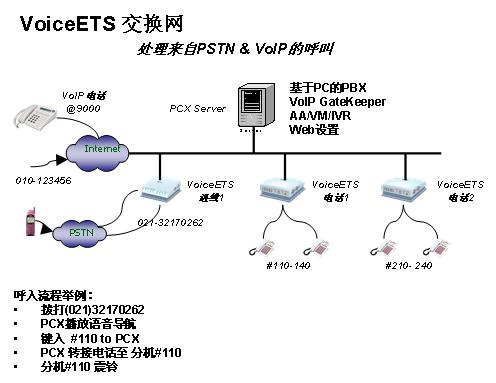 。。VoiceETS,是架構(gòu)在企業(yè)局域網(wǎng)絡(luò)上的電話系統(tǒng),無須傳統(tǒng)電話交換機,無須附加的IVR系統(tǒng)和VOIP網(wǎng)關(guān),以較低成本和較高的集成性,完成幾乎從電話交換機和VOIP整合到IVR、IP呼叫中心等所有企業(yè)級應(yīng)用。