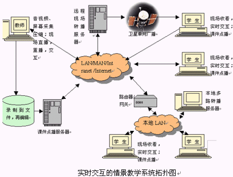 。5)通過先進的課件流多路廣播技術,最大限度地利用教師的勞動成果,讓更多的學生參加教師的教學活動。